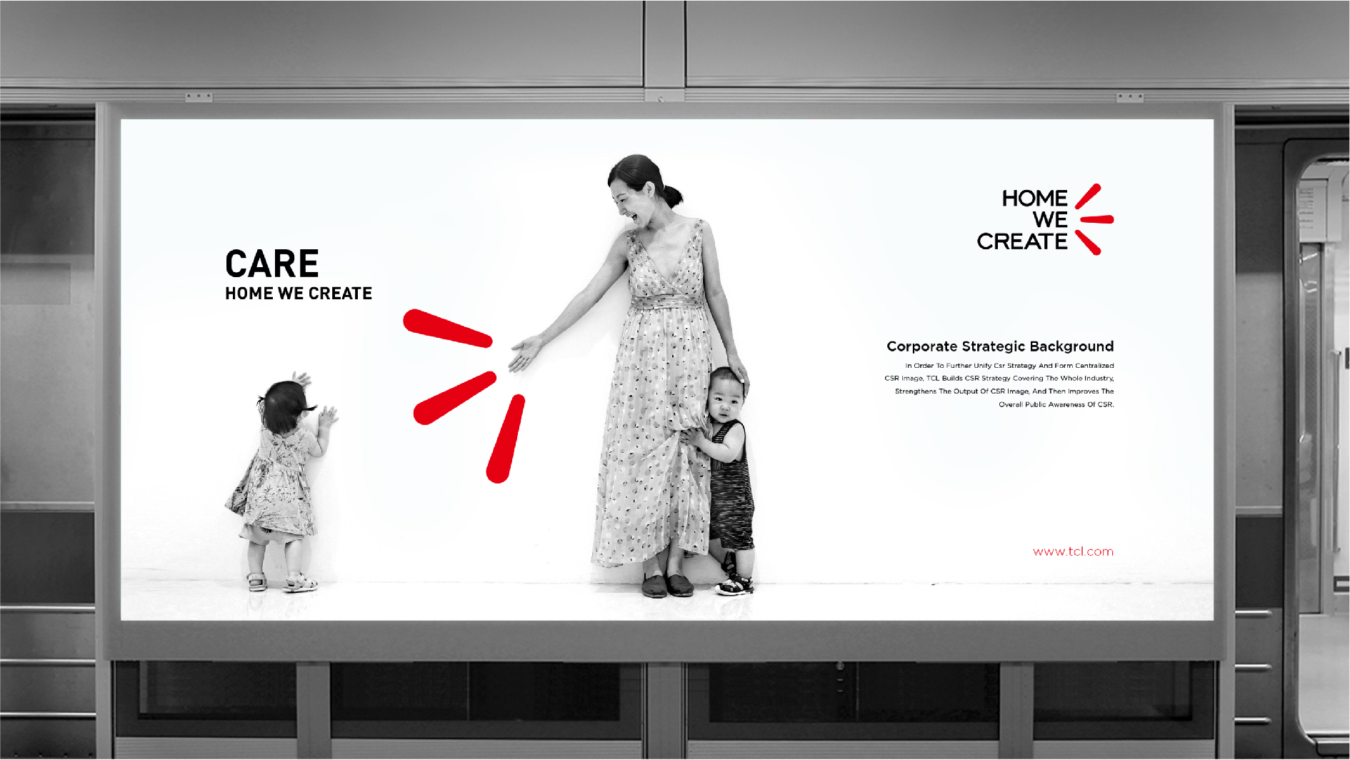 本項目的客戶整體需求是,深度挖掘TCL社會責任理念、 TCL利益相關方同”家” 概念建立深度關聯;同時,研究其它具有代表性企業CSR形象露出,建立差異化區隔。和與德站在“家”戰略的高度,設計有一定包容性的標志為其長遠發展提供延伸空間,助推“家”戰略成長,幫助戰略落地,從而加強CSR形象輸出, 提升企業CSR整體公眾認知度。