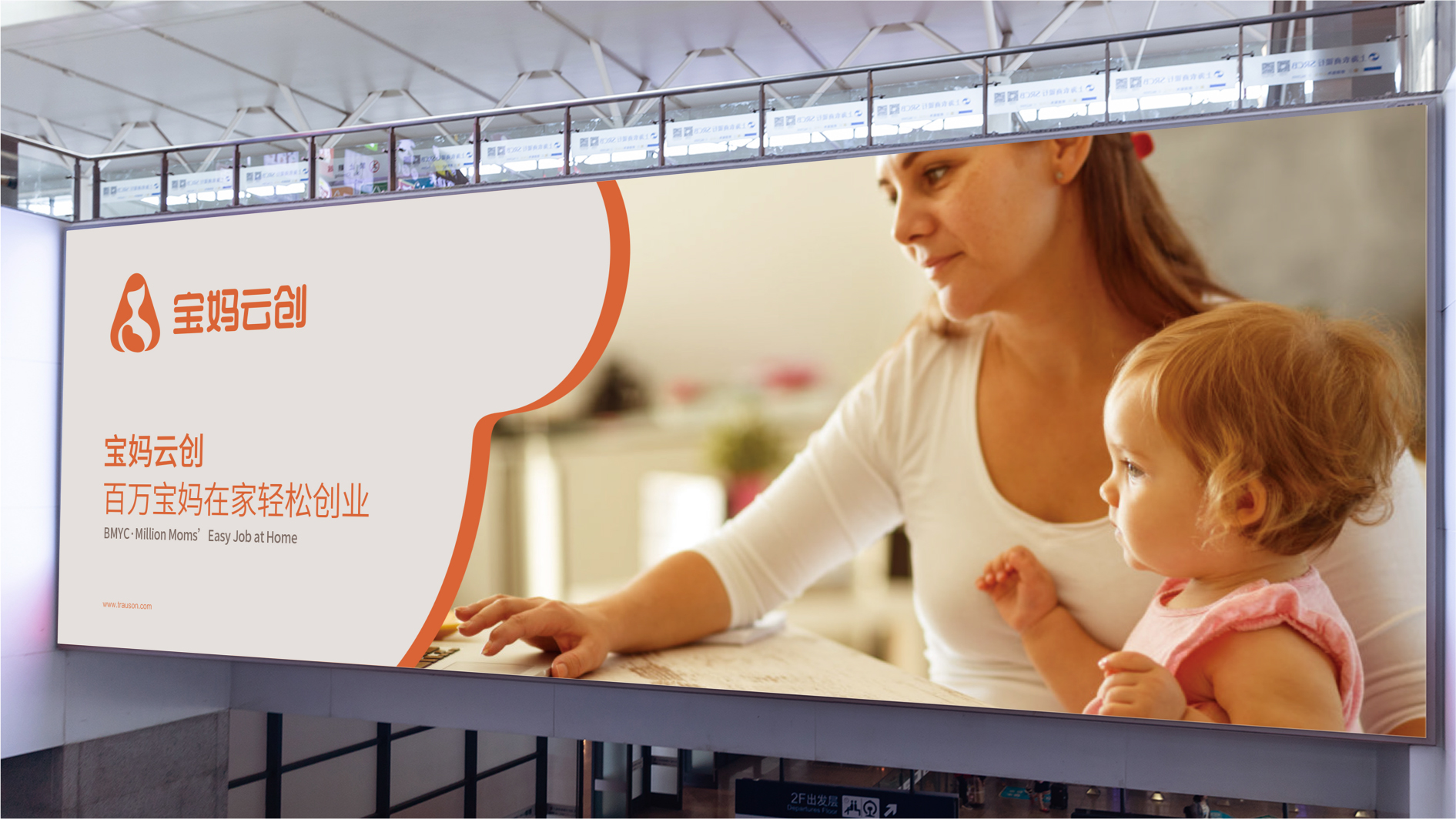 和與德根據寶媽云創的企業價值觀、品牌氣質和品牌內涵,選擇橙色為標準色彩,象征了生命的活力,對事業的熱情,展現辣媽生命的光彩。標志以成熟優雅的媽咪形象為主體,雙手擁抱著寶貝,給人以溫暖、自信的品牌形象,寶貝的造型猶如元寶,巧妙的展現女性依靠寶媽云創平臺獲得成功和財富的自信形象。而三角形本身凸顯獨立、堅強、自信的含義,圓潤的三角,更加溫和親近,彰顯寶媽的偉大形象。