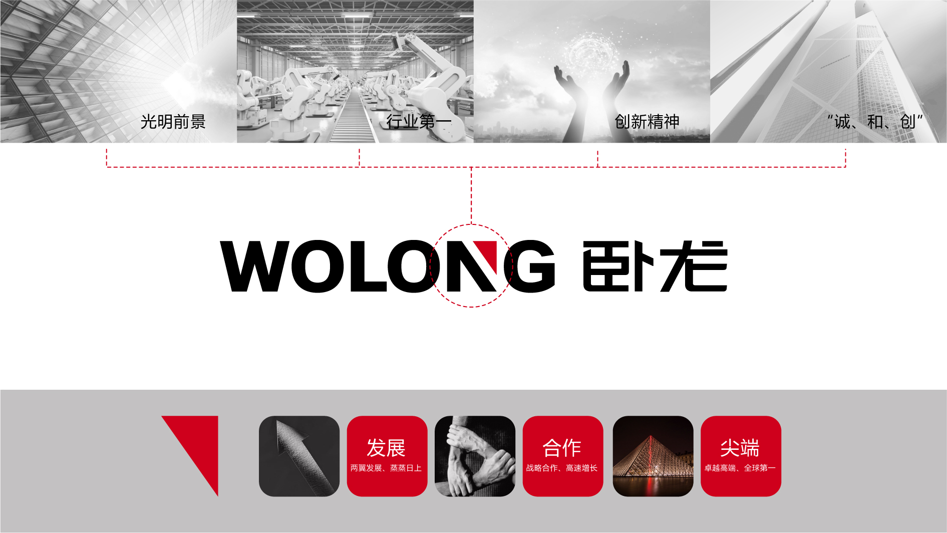 和與德根據臥龍的企業文化、經營理念和發展愿景,設計品牌標志,體現其“誠實、和諧共生、創新”的企業精神,以及引領電機產業的壯志凌云。