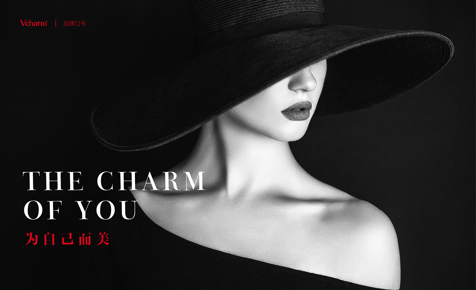 依據對美容整型產品行業的經驗和分析,和與德為Vcharm品牌定制品牌專屬色:玫瑰紅,使得品牌在行業內有一個很好的占位。其logo的設計典雅高貴,使品牌更加有包容性,為未來品牌整合做鋪墊。