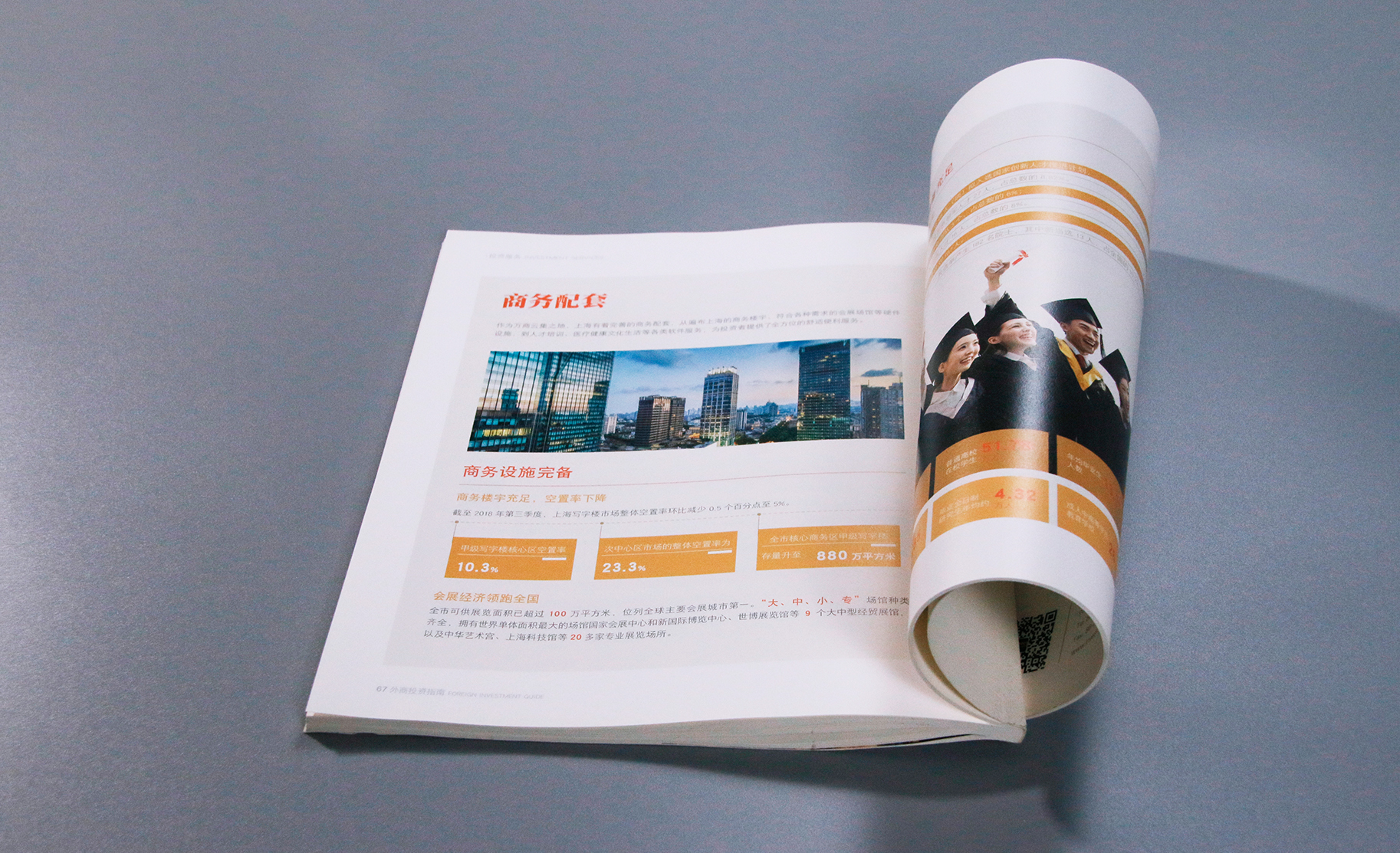 去繁從簡又具有獨特性的企業功能畫冊設計《2019上海外商投資指南》是上海市外國投資促進中心為宣傳上海整體投資環境、投資政策、重點產業及區域、投資服務等內容起草制作的中英文雙語投資服務宣傳冊。