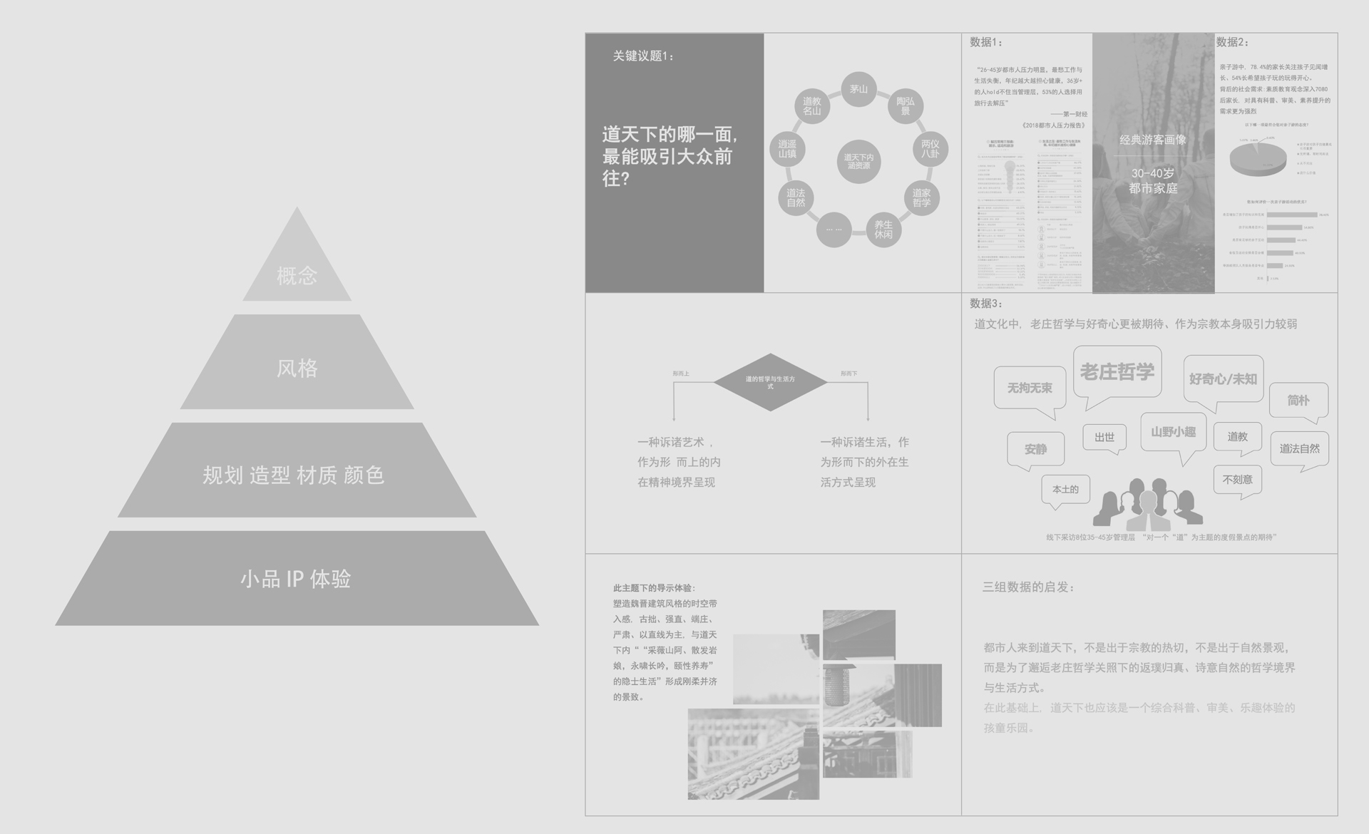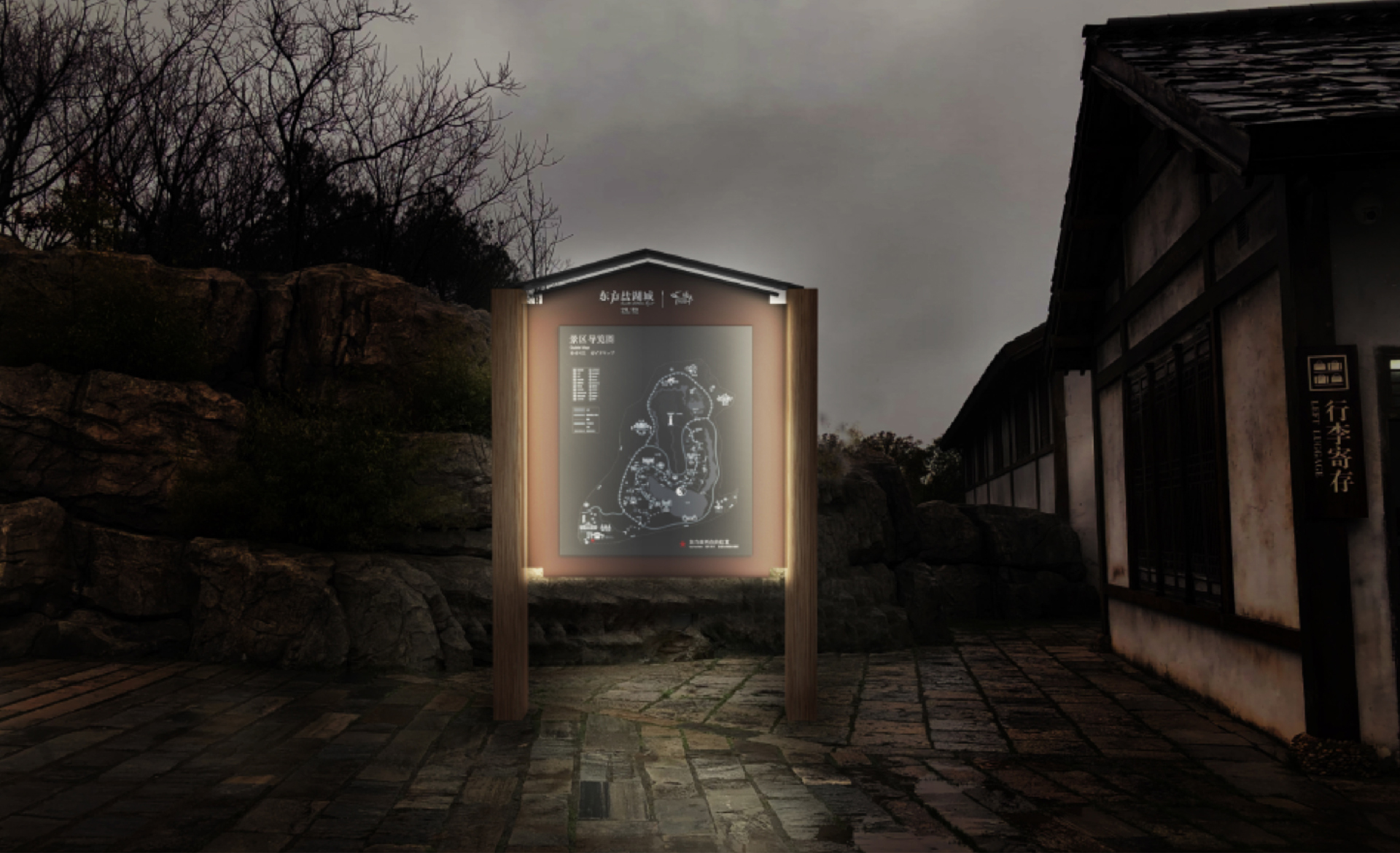 和與德通過多次實地勘察與會議調研,分析診斷原有導視系統存在的“硬傷”(游客看不見、看不懂、找不到等問題)并提出了針對性的解決方案;以標準性、可達性、有效性等設計原則為基礎,重新科學規劃了景區交通動線、合理劃分了各功能布局并有效設置了各類標牌點位;深挖景區核心“道教文化“基因,剖析魏晉風格的建筑特點,最終提煉出”應物“的設計概念,巧妙貫穿于整體導視系統設計中。
