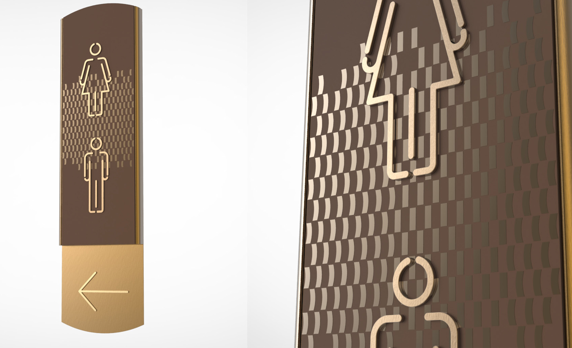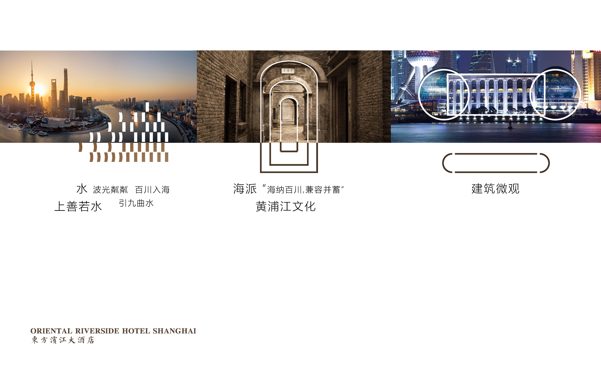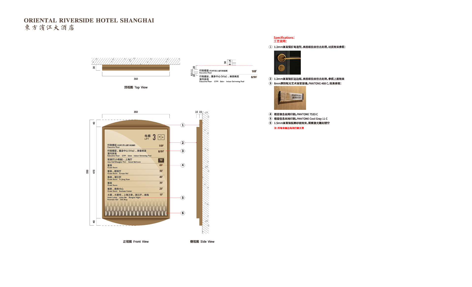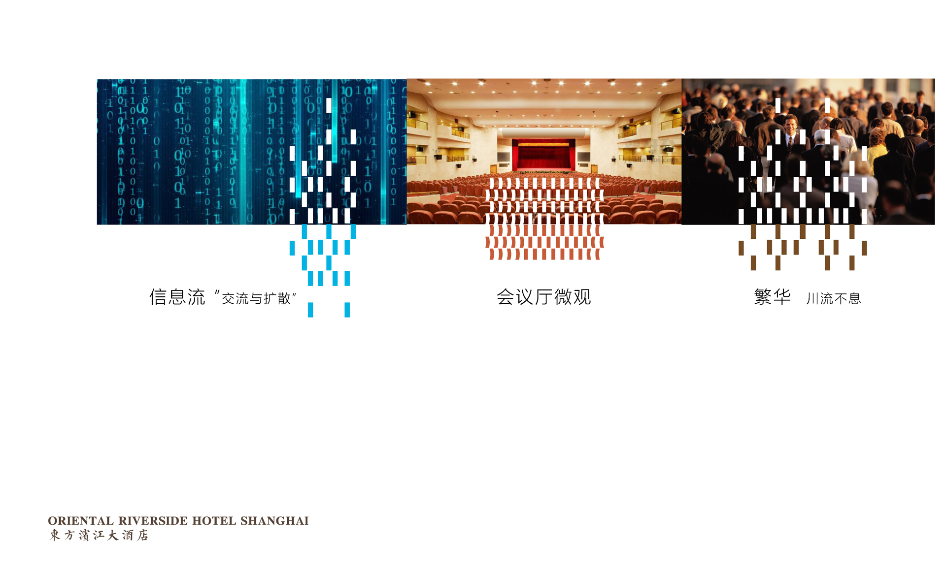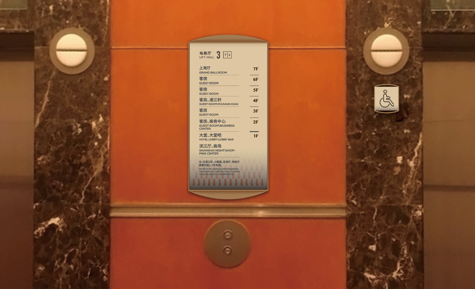 原有導視系統在視覺層面和功能層面存在的缺少系統性、美觀性及全局性的問題,不但影響了客戶日常運營管理工作,而且影響了其所接待的客人對其整體形象的認可度。和與德在充分了解其需求后,提出了相應的導視系統提升建議及方案,視覺層面側重考慮上海國際會議中心獨有的建筑環境空間特色,結合聚、散、流,從LOGO中演化輔助圖形,并通過漸變等工藝建議,以凸顯其品質感;功能層面側重從各樓層中的功能布局及各分區的關聯性出發,系統性地進行規劃布點,力求實現不同人群的導向需求。