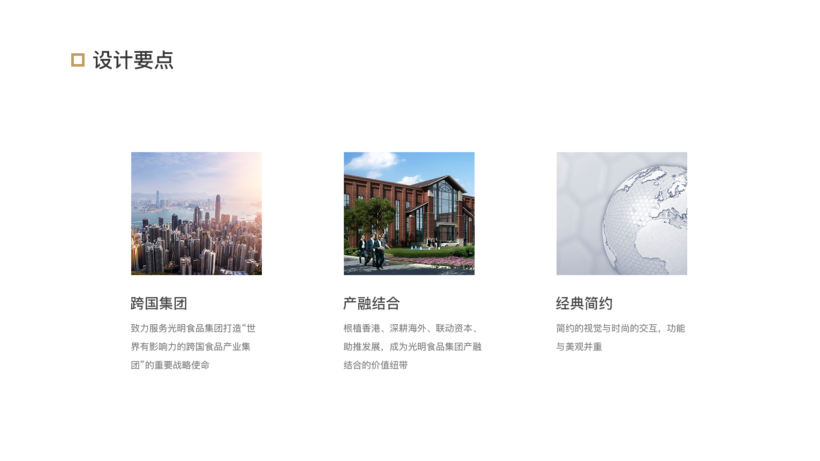 和與德與光明食品國際深入溝通對接,形成了光明食品國際的主要業務、戰略愿景、企業文化的深刻理解,將光明食品國際專業、誠信、創新、國際化的品牌調性融入網站設計。
