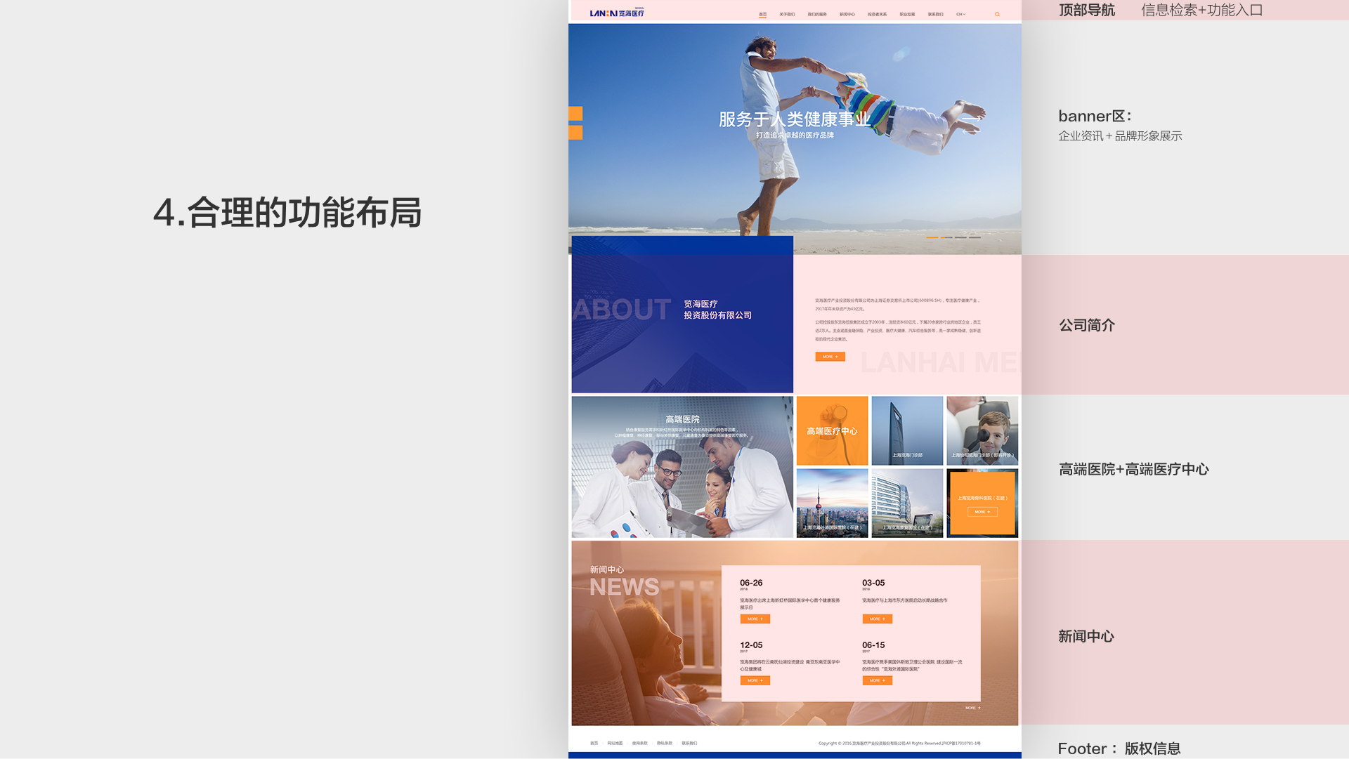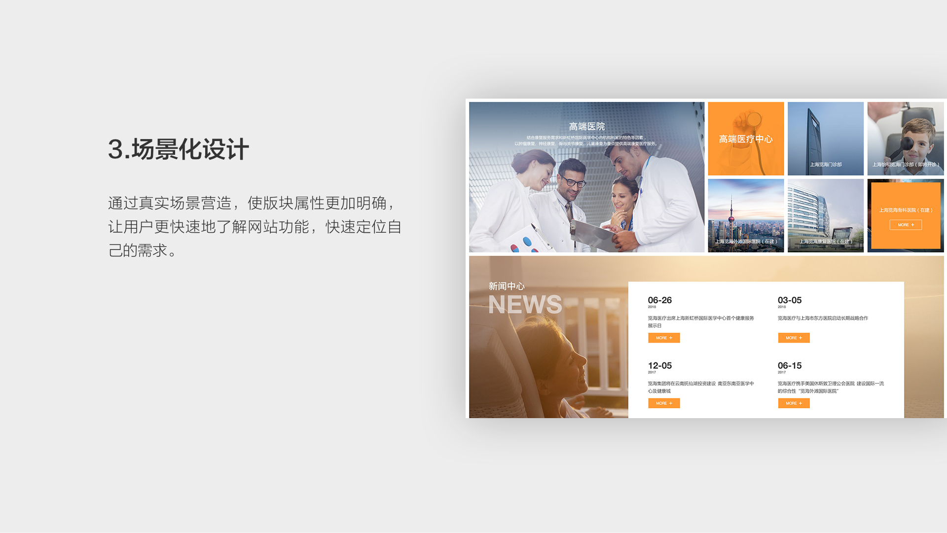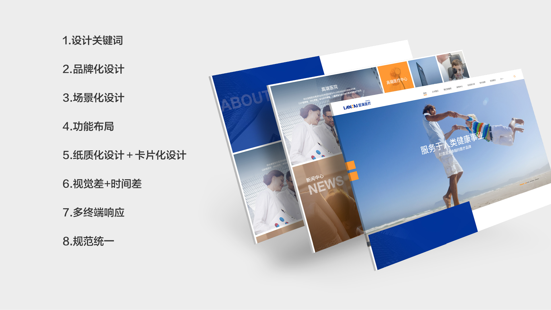 為提升品牌形象,體現國際化和人文關懷,增強品牌官網視覺體驗,和與德通過對覽海醫療官網的功能布局、交互設計、視覺差與時間差,多終端相應等進行了全方位的視覺體驗升級。新的官網布局清晰,更加符合品牌調性。