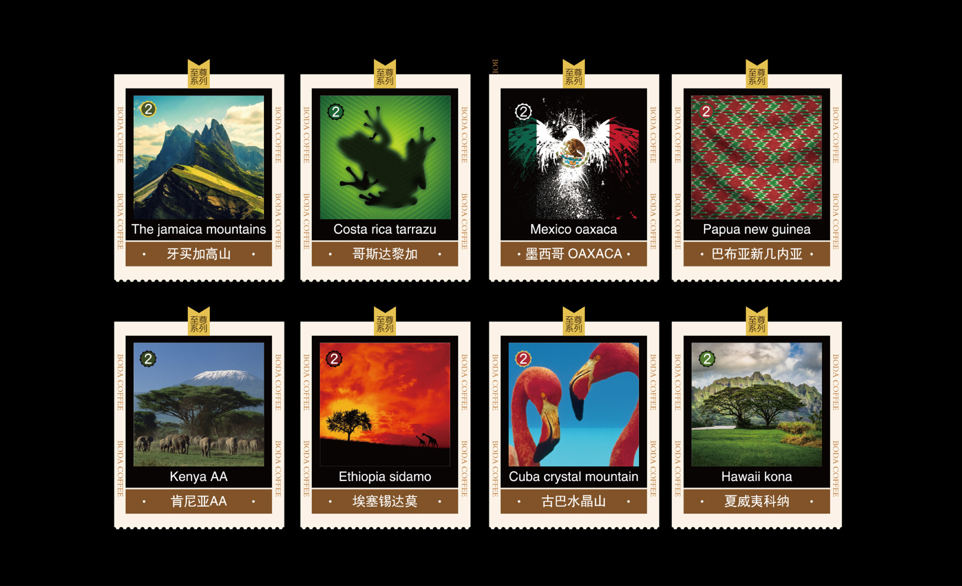 博達咖啡主打輕奢進口的咖啡粉,咖啡豆均源自牙買加,墨西哥,古巴,夏威夷等盛產咖啡豆的地方,其品類多且臻貴,是一個集融合全球81種臻稀咖啡品質的咖啡品牌。和與德結合全球咖啡豆產源地的自然和人文特色,作為包裝的主要設計亮點,其顏色也根據(jù)地區(qū)特色進行分類,整體包裝質感高級,特色鮮明。