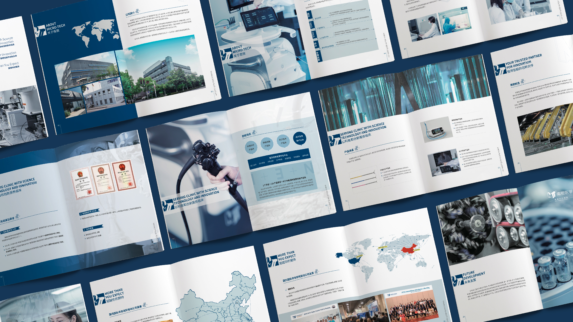 南微醫(yī)學公司找到和與德,希望為其公司設計一款國際化,簡介商務風格的公司畫冊,適用于公司對外宣傳拓展業(yè)務,和與德為此結合了通過對南微醫(yī)學品牌的調(diào)研,了解其公司高精尖的醫(yī)療產(chǎn)品后,為畫冊定制了一套國際,簡約,整體富有科技感風格的畫冊,利用點線面,細線和色塊突出儀器的精密,科學,整體顏色為藍色調(diào),科技風,印刷工藝采用了凹凸的壓印技術,凸顯出企業(yè)的大氣和國際化。